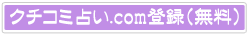 占い師をみんなで口コミしたり、話題の占い師のクチコミ情報をチェック、先生からメッセージを閲覧できる占い好きの皆様のためのコミュニティサイトです。 口コミ占い.comの口コミは 1.実際に口コミ占い.comから鑑定をうけた『リアル系口コミ』 2.以前他で受けたことがある『ウワサ系口コミ』 の2つがあります。 最新の占い師口コミ情報はこちらからチェックできます!各占い師のページトップの下記より簡単に参加できます! 口コミ占い.com を最大限に活用するために、まずはメンバー登録からスタート! メンバーに登録してクチコミするとポイントが貯まってプレゼント企画や割引に使えます。 口コミ占い.com のログインIDをお持ちでない方