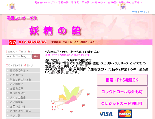 電話占いサービス 妖精の館先生