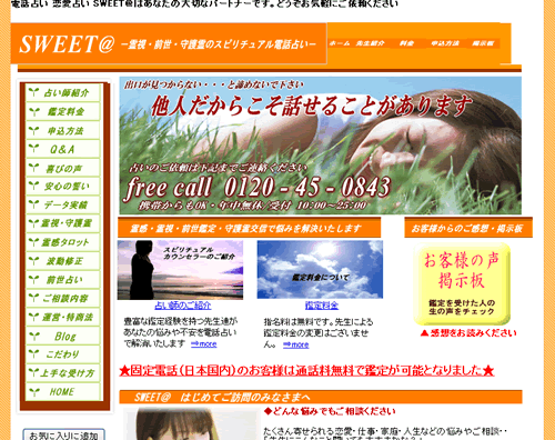 ★電話占いSWEET@ 固定電話・通話料無料サービス開始しました。 ★特別キャンペーン… |
